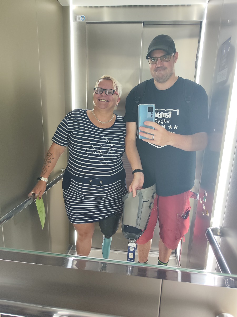 A gyomrom összeugrott mert tudtam, hogy azzal nem tudok önállóan járni, az számomra nem biztonságos. Meg kellett csinálni, hogy a szakértői bizottság döntést tudjon hozni a számomra megfelelő lábprotézisről. Tim a mostani protézisen cserélte ki a térdízületet és bizony csak mankóval voltam képes menni. Legalább túl voltam rajta és jött az újabb várakozás. Jelezték, hogy augusztus közepéig születik döntés….