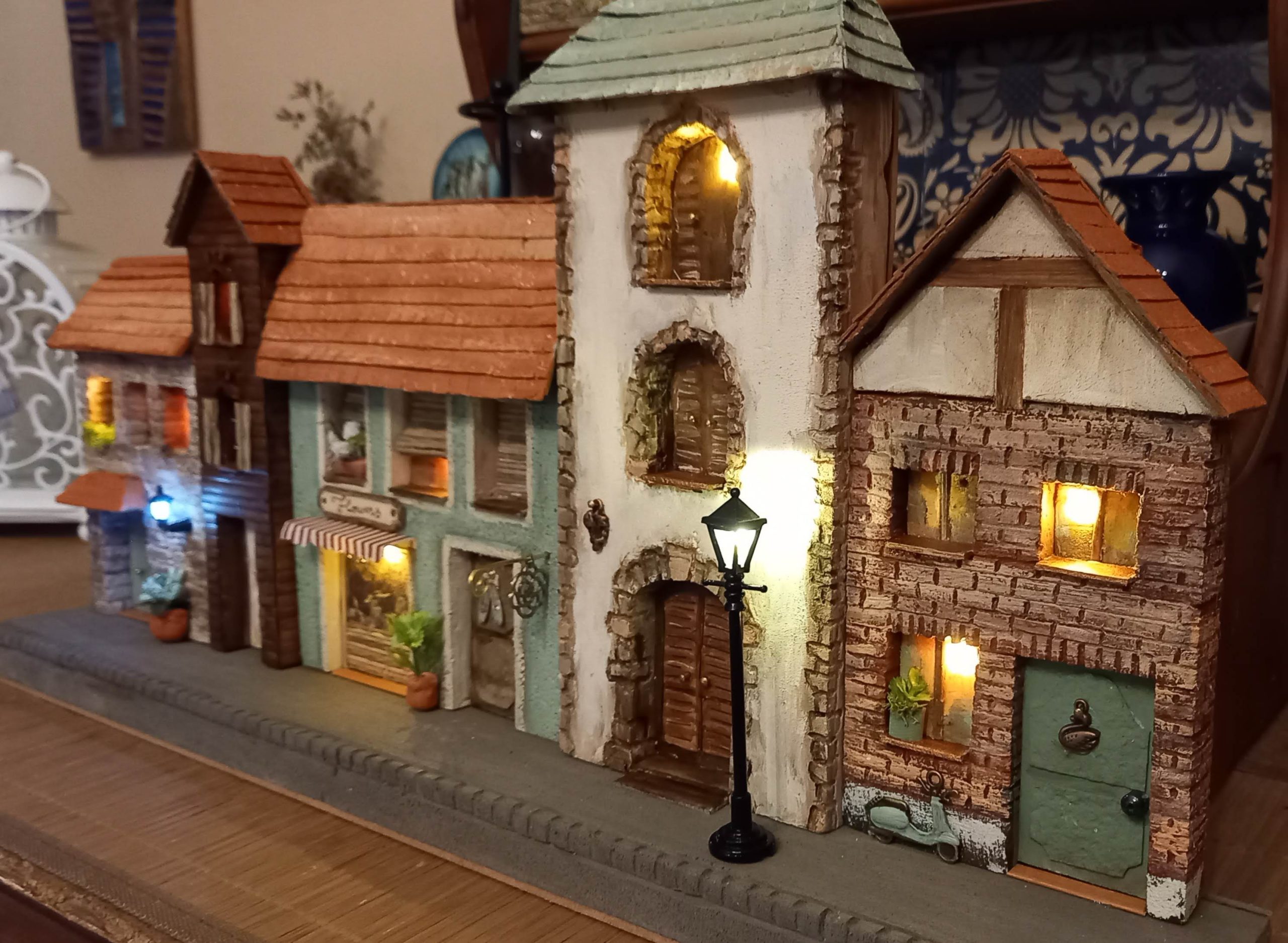 Minden részlet élethű és az utolsó milliméterig kidolgozott, a kis házak tetőcserepeitől a kandalló, előtt álló fáskosárban sorakozó fahasábokig.