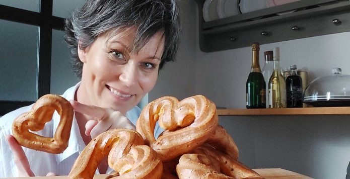 És mi az, ami ilyen figyelmet és törődést igényel? Az égetett tészta, ismertebb nevén a képviselőfánk. Úgyhogy most legyen bármilyen ellenérzésem is a szívecskékkel kapcsolatban, most én is szívecskét kanyarintok nektek. Csak nem kockás, hanem sütőpapírra.