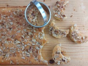 180 fokon aranybarnára sütjük. Miután elkészül, hagyjuk kihűlni, és pogácsaszaggatóval kis kiflikre emlékeztető félholdakat szaggatunk a tésztából. Tálalás előtt porcukorral meghintjük, és szépen felsorakoztatjuk őket egy az ünnephez méltó tányérra, vagy dobozba zárva velünk tarthat, bármerre is vezessen az utunk.