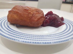 És sütöttünk ki bolfrotot, másnéven puf pufot, amit itthon csak farsangi fánkként emlegettünk, pedig ghánai fánk is, és elő is kaptuk a lekvárkészletünket hozzá. A bolfrot tésztájába szerecsendió kerül, szerencsére mi többet tettünk bele, mint amit a recept előírt, mert imádom a szerecsendiót. Szerintem az egyik legrafináltabb fűszer!